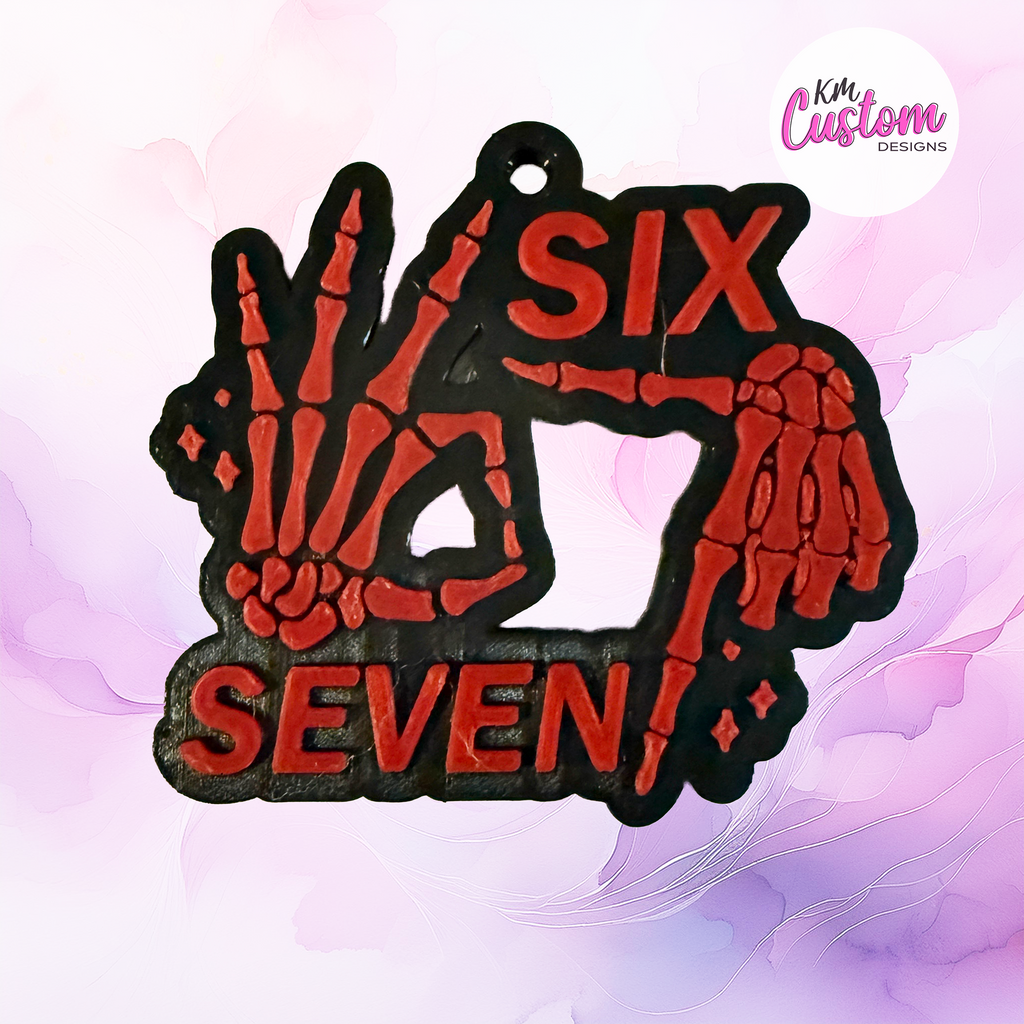 Add a bold touch to your keys or bag with this striking 67 Bones Keyring! Featuring tiny 3D printed bones arranged to create the iconic 6/7 hand signal, this keyring is a fun, quirky statement piece for anyone who loves unique designs.